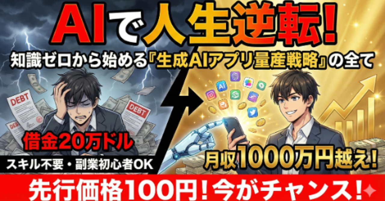 AIで人生逆転!借金20万ドルから月収1000万円越えへ。知識ゼロから始める「生成AIアプリ量産戦略」の全て